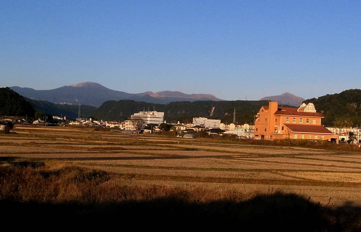 久しぶりにクリアの霧島山が。初雪(?)が夕方でも残ってました。