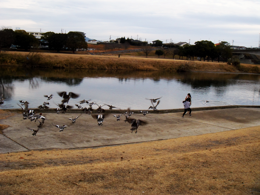 投稿日: 2026-02-062026-02-06選挙カーとカモに追われる少女たち 散歩中に選挙カーに遭遇。御本人が乗っておられたようです。いろいろありますが、鹿児島4区は高市旋風も吹かず、かと言って中道は出馬もしていないし、残りの国民・参政・社民の新人3名に風が吹くわけでもなく、無風地帯と思います。昨日の来鹿しての鹿児島市での応援演説会にも4区候補の顔はなかったような。なお、カモたちは驚いて飛び上がっただけです。