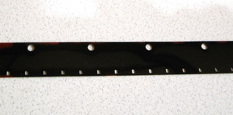 とりあえず、16mmのダミーのフィルムに、今回製作した穴あけ機で穴をあけて試験してみた。