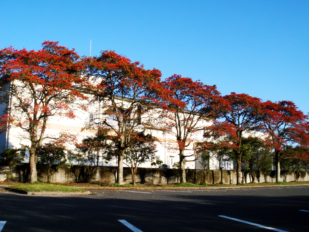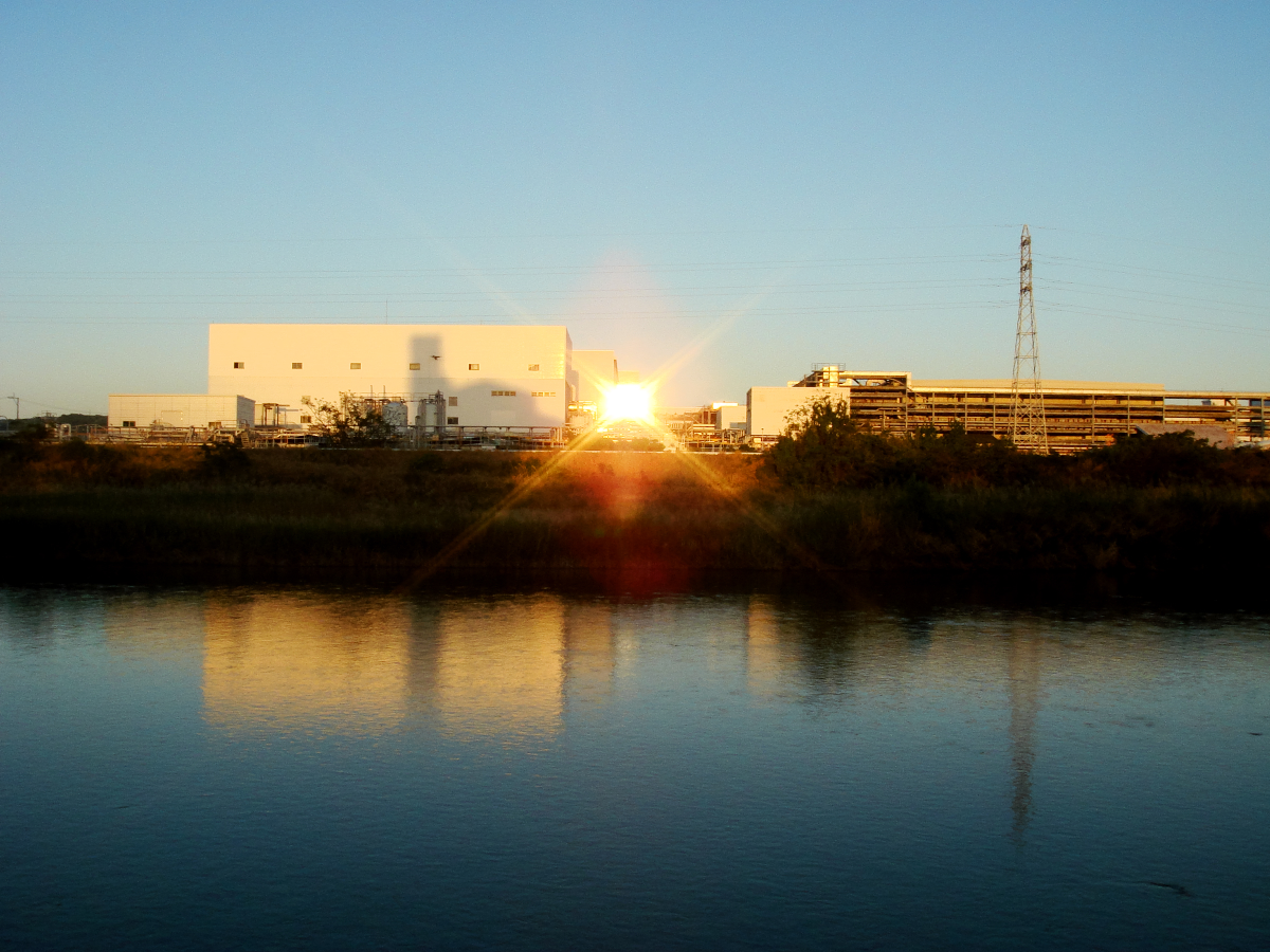 夕日がガラスに反射していました