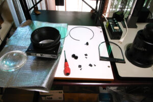 次に引き伸ばし機の電気系統のチェック。LPL VC7700は最後に使ったのが去年の夏だけど、ハロゲンランプが問題なく点灯して一安心。ハロゲンランプは接続部にサビの問題がある。長期間使わない場合はランプを抜いておいた方が無難。べセラーのヘッド上下モータも問題なし。そのあと、ヘッドを分解して7年ぶりぐらいにコンデンサーレンズのクリーンアップ。べセラーのコンデンサーレンズは防湿庫に入れられないのでカビの心配があるけど、思ったよりきれいな状態で問題なし。べセラーのヘッドには大きい凸レンズのコンデンサーが向かい合わせで付いている。下の方のレンズは外し方がわからないけど、拭けるから問題は無い。一番上に1枚の平ガラスが付いていて、上からホコリが入るので、おもに汚れるていのはこのガラス。レンズクリニングテッシュでこれらを一通り拭いて完了。なおフォコマートのコンデンサーレンズは小さいので、外して防湿庫保管している。VC7700はレンズなしなので、心配がない。