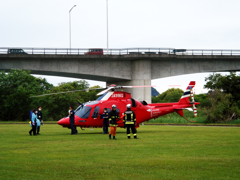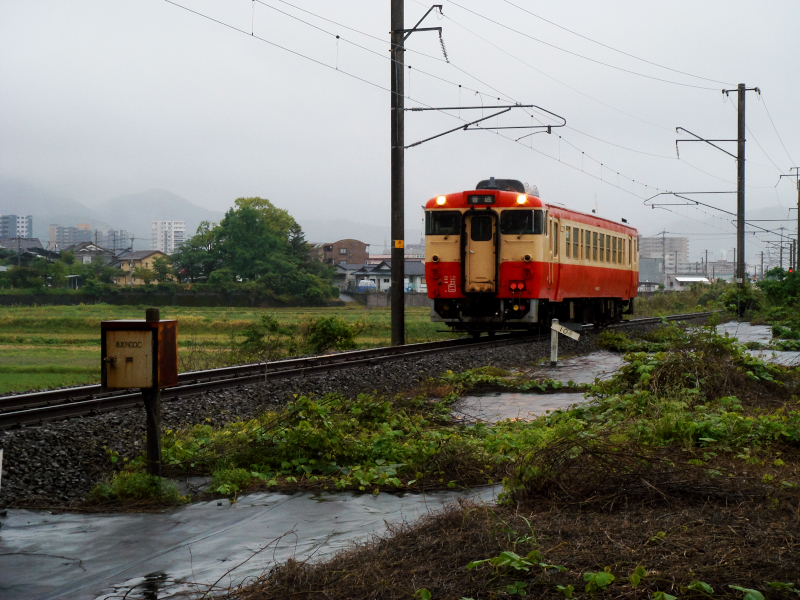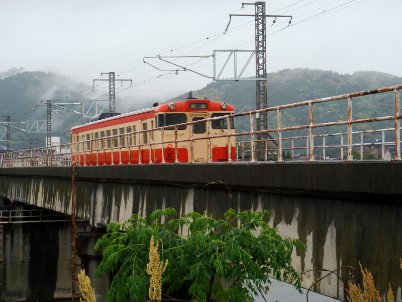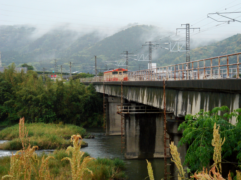 運休中の肥薩線も、6月末の再開に向けて、復旧工事区間以外の沿線の整備もはじまったようです。(肥薩線の写真は昨日) 赤い列車は国分始発の鹿児島駅方面に向かう日豊本線の列車です。この橋の先で、肥薩線と平行して走り、隼人駅に着きます。