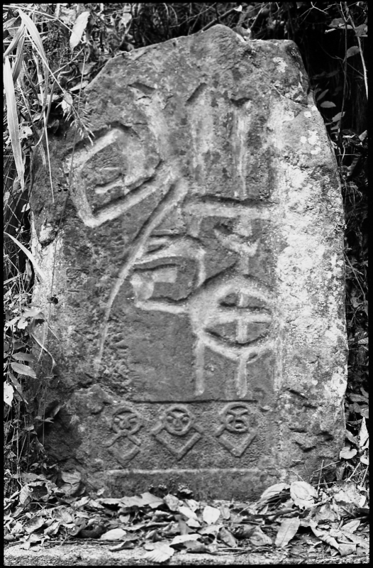 投稿日: 2025-10-232025-10-23デフォルメされた道祖神 古代文字みたいにみえるけど、「道祖神」と書いてあるのでしょう。「いわざる、きかざる、みざる」は絵文字になっている。ただ制作は最近で、昭和55年(1980)とのこと。 【2003/10/25 長野県明科】