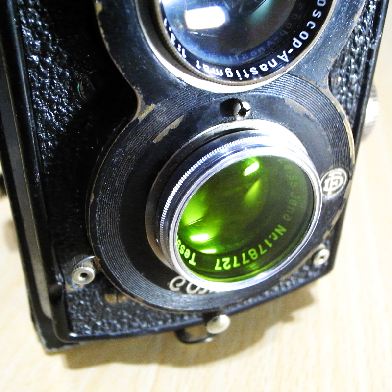投稿日: 2026-01-142026-01-13 投稿者: takesakoRolleiflex standard フィルター届く ヤフオクで買った被せ式のフィルターが届いた。Yellow Filterと思って落としたけど、黄緑のフィルターだった。ケンコーの説明を読むと、「PO0は黄緑色のフィルター。イエロー系フィルターとグリーン系フィルターの両方の性質を併せ持ちます。」とあるので、イエローフィルターとしても使えるようだ。この上に被せ式のフードを付けられる。