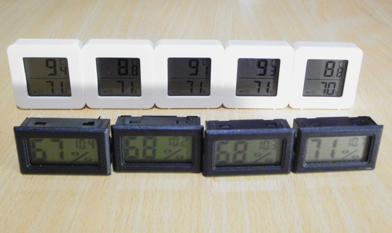 肝心の測定値は、前回購入時試験した時には、5%ほど低めに出ているという結果だった。並べて測った今回の新しい湿度計の結果は、古いものより3%程度多めにでているので、真値に近づいていると思いたい。
